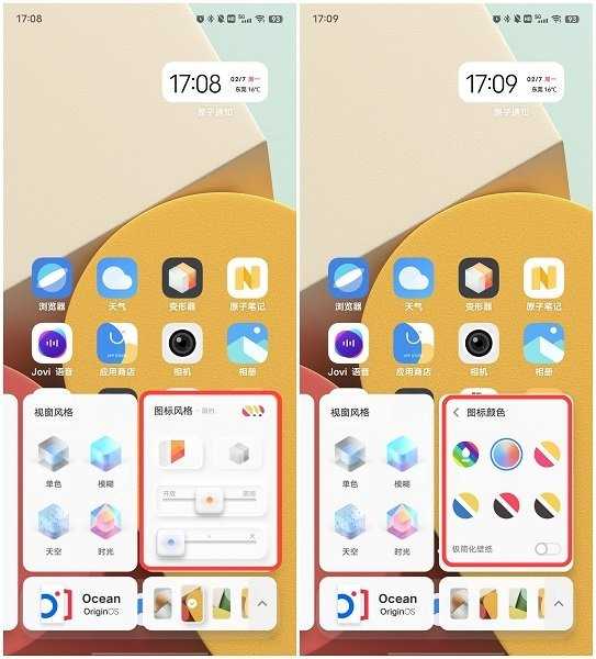 1、可调节图标风格为精美/简约,选择简约风格时可修改图标颜色;设置壁纸为“极简化壁纸”;