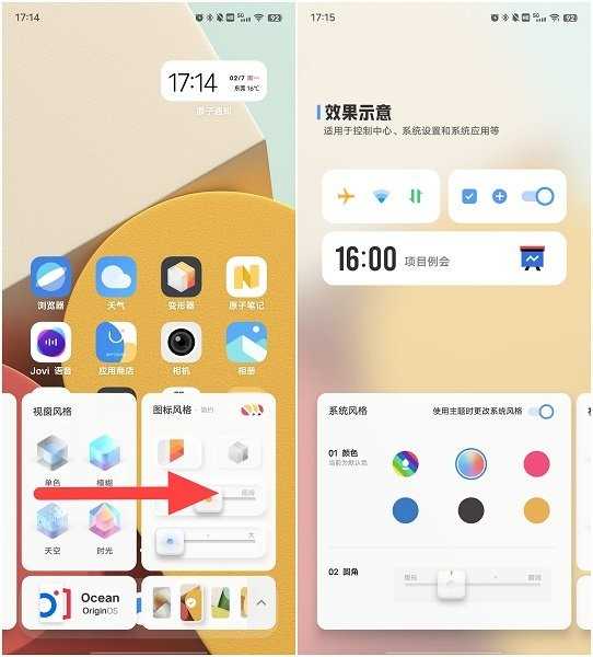 3、开启“使用主题时更改系统风格”后会跟随当前主题的颜色或圆角,关闭则不跟随。