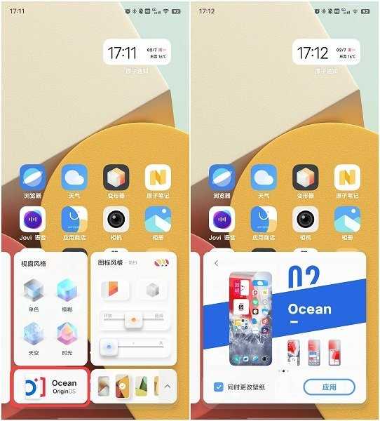 7、通过桌面变形器图标,能以一键的方式实现壁纸风格、图标风格、两套桌面系统的切换。