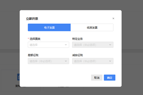 ③弹出立即开票窗口,默认为电子发票,如图3所示。