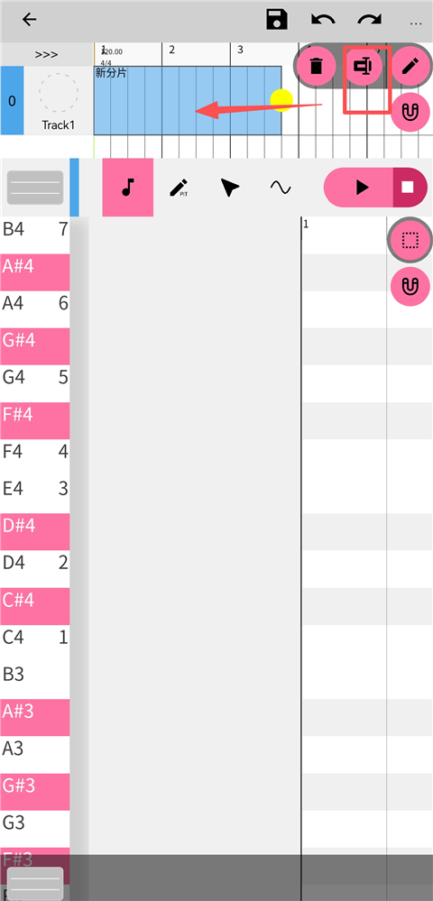 3、为触屏操作定制的MIDI编辑器与音轨管理,支持多点触控精确调节音高线、颤音线。
