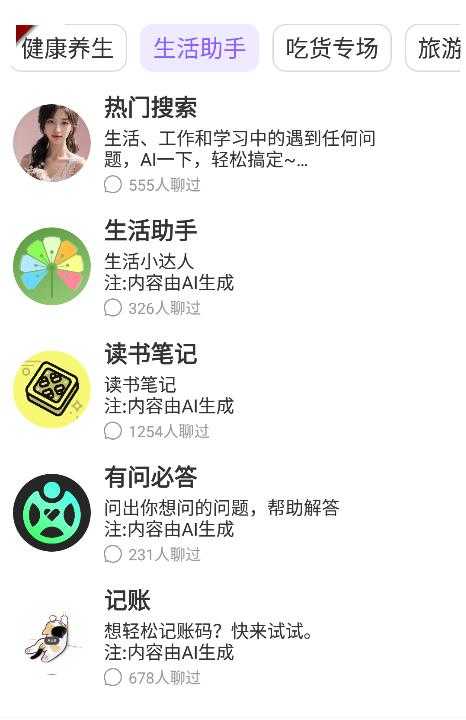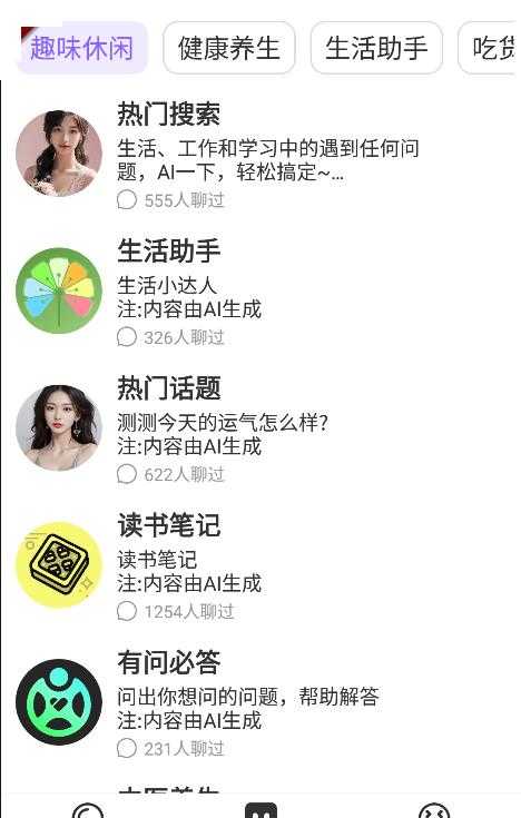 1、进入到ai对话板块能够看到各种话题