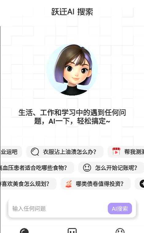 跃迁AI是一款集智能问答与多领域知识服务于一体的AI应用,它依托先进的自然语言处理技术,为用户提供涵盖生活百科和专业咨询等场景的即时解答服务,而且平台支持对话收藏和热门话题追踪等功能,并整合医疗健康等垂直领域知识库,助力用户高效获取信息。app支持对话收藏功能,用户可以将重要的对话内容收藏起来,方便以后查询自己的对话历史,回顾和总结所学知识,整理了许多热门的搜索标签,用户可以通过查看不同的标签效果。