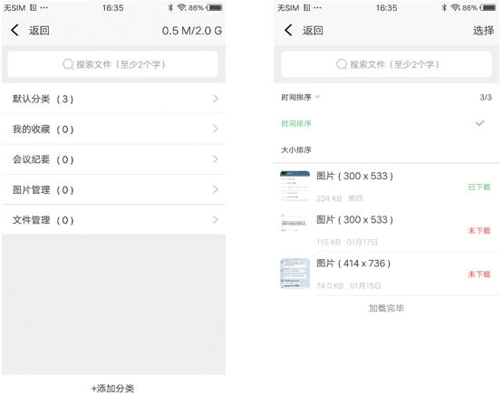 ③密云文件支持分类功能,文件管理器中点击下方添加分类即可创建分类