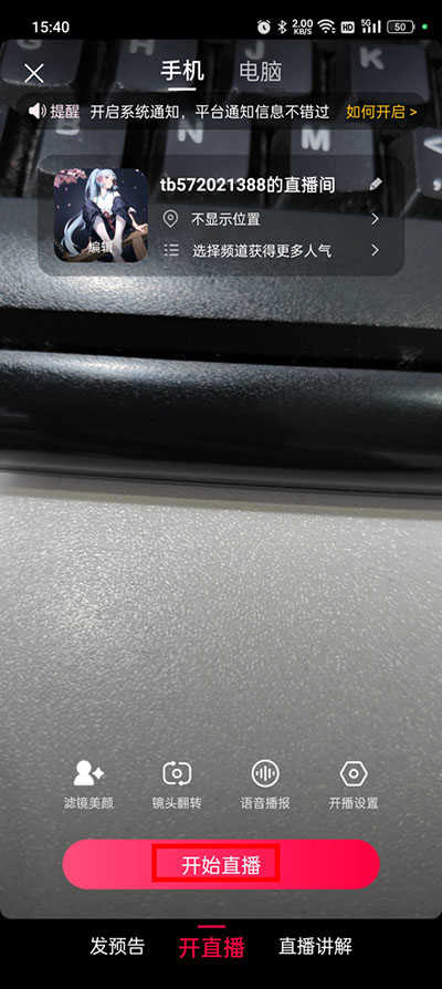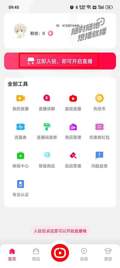 4、确认入驻成功之后就可以直接开启直播了。