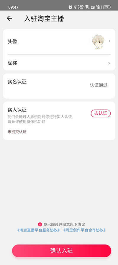 3、识别完毕之后勾选协议然后【确认入驻】;