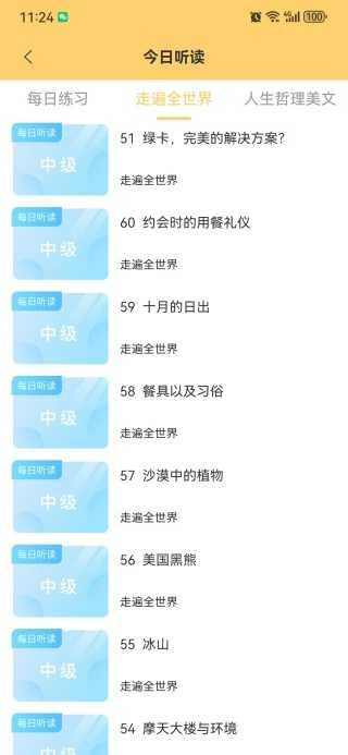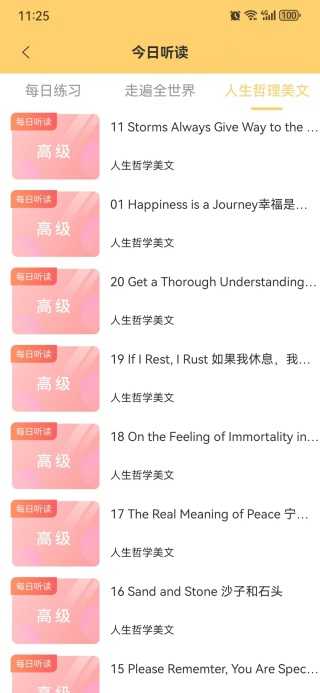 2、这里就能提供每日练习、走遍全世界、人生哲理美文服务;