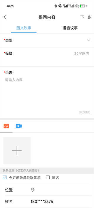 填写联系信息:可选择匿名,位置与姓名可自动或手动填写。