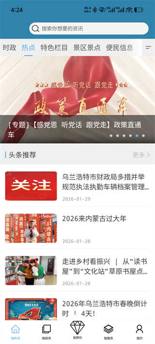 3、首页提供丰富的热点、时政要闻、便民信息。