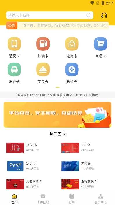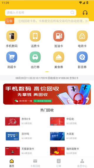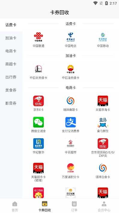 2.APP为你提供了手机数码、话费卡、加油卡等多种回收项目。