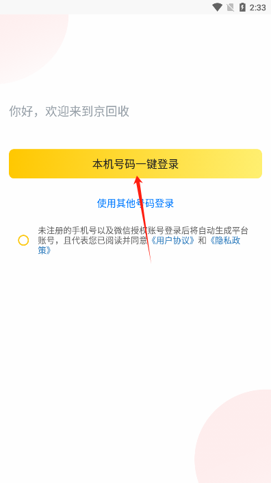2、进入后阅读并同意京回收平台app的用户协议
