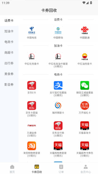 4、在卡券回收板块可以提供了相关的分类