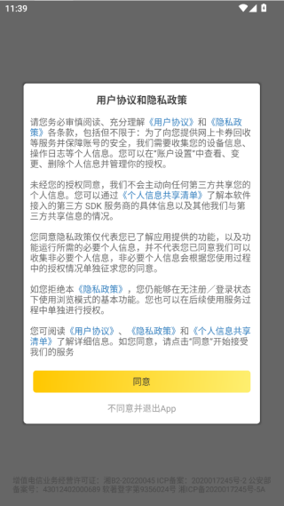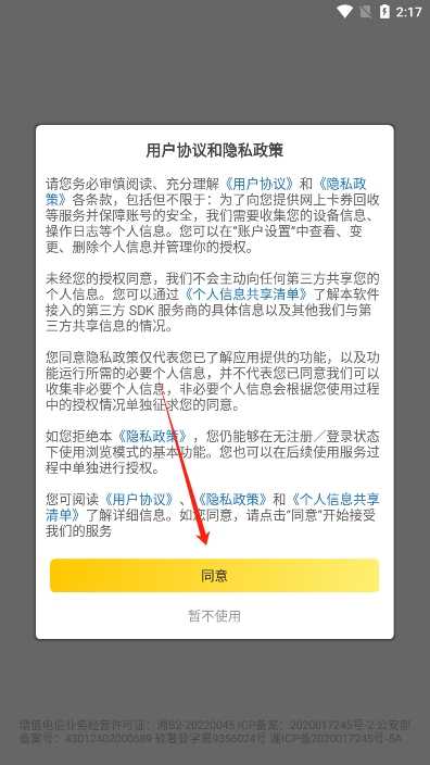 1.在使用APP之前,你需要先同意相关的用户协议和隐私政策。