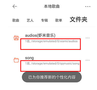步骤四:之后就可以查看到自己本地的音乐文件夹了