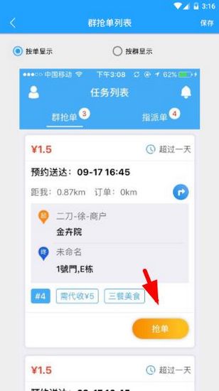 2.接着骑手会拥有2种接单模式,一种是【群抢单】,一种是【指派单】