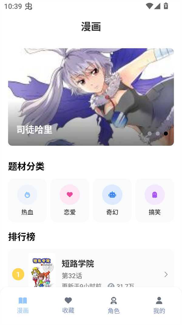 2、接下来我们就可以在分类里获取到热血、恋爱、奇幻、搞笑等多种不同题材的漫画资源进行选择,从而找到自己喜欢的漫画。
