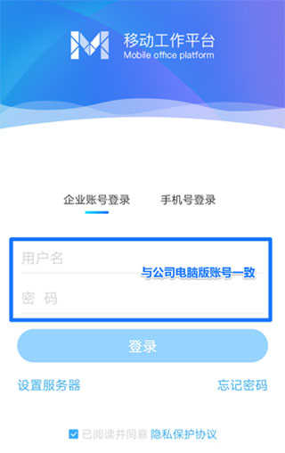 移动办公M3如何设置服务器和账号