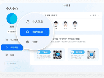 (二维码位置:打开学习机设备-个人中心-我的家庭)