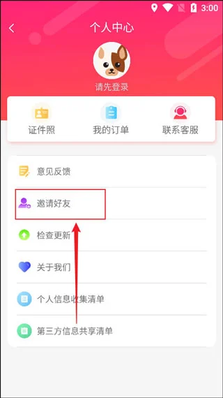 证件照相机App如何邀请好友?