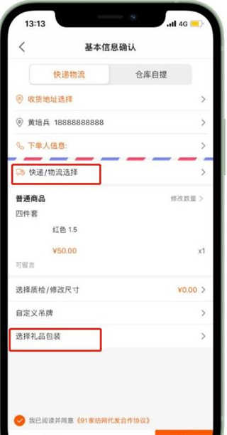 5、点击“快递/物流选择”选择快递物流公司;可点击“礼品包装”自行选择外包装。完成后点击提交订单即可。