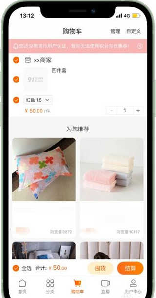 3、而在【购物车】页面,我们还能看到自己添加的各项商品,并可以在此进行一键付款等操作。