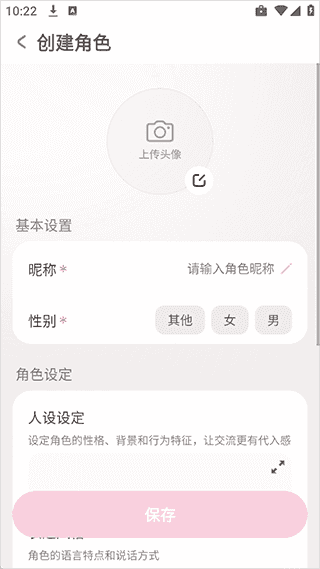 1、使用手机号登录app后,首先填写昵称、性别等信息,以便让AI角色怎么称呼你