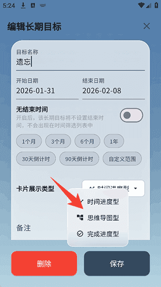 1、进入app后,比如选择一个目标进行创建,首先把目标的名称,完成时间等预设好