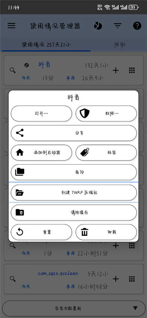 3、点击应用后面的+号可以限制软件使用时间,后面表格图标可以进行更多操作