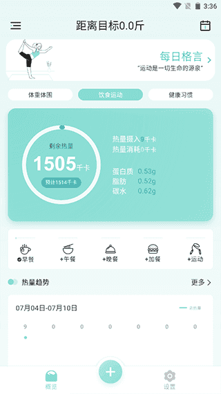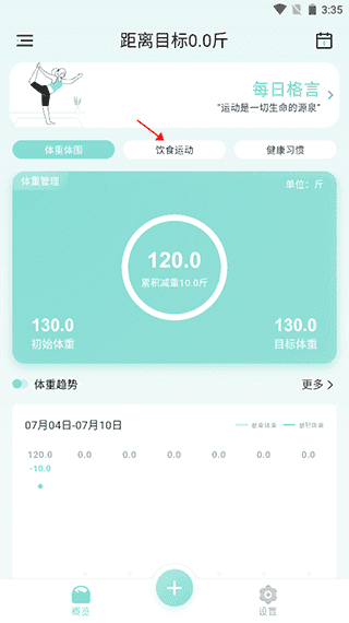 1、打开软件后进入软件概览,选择饮食运动那一栏。