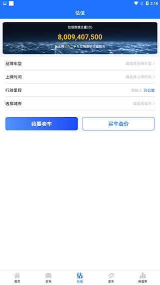 1、进入软件首页之后,我们先点击上方的【爱车估价】按钮。