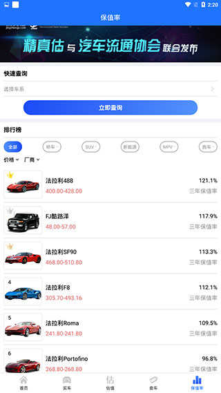 2、点击【立即查询之后】,就会弹出该车型的具体【保值率信息】了。