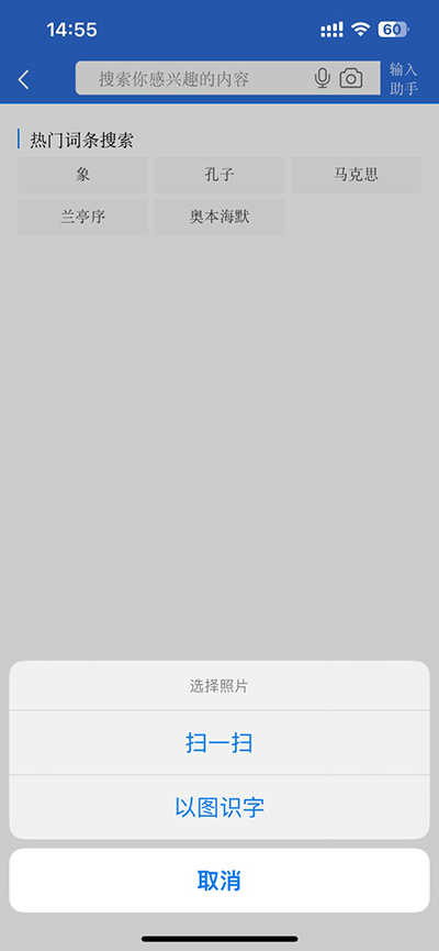 4.搜索功能主要有打字输入,拍照、语言识别三种。