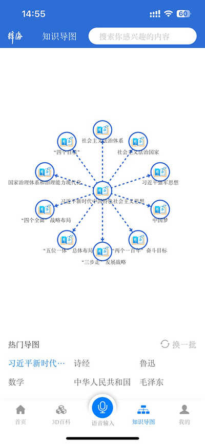 1.首页可以看到辞海最基本的搜索功能以及一些知识体系推荐。