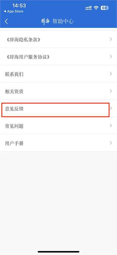 第三步,进入帮助中心界面,点击页面中的【意见反馈】选项。