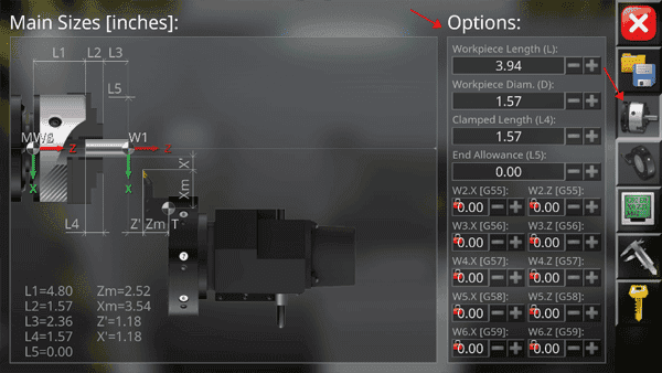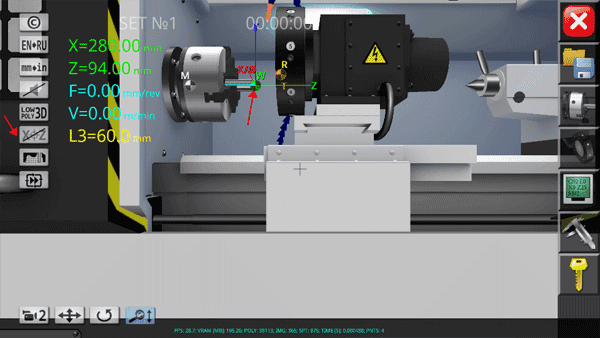 2、点击左边的红色箭头指向的“X.Z”,你会发现左边显示了X、Z、F、V、L3这几个参数的数值和计量单位,以及模拟器上的线条。