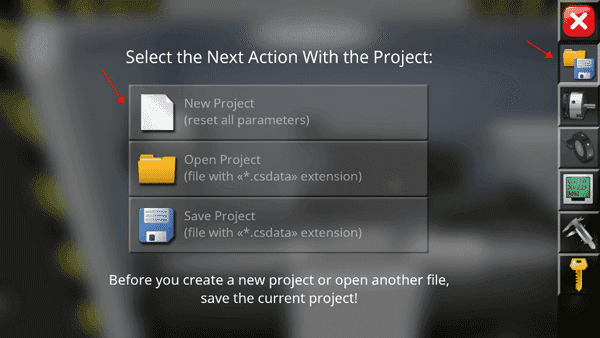 5、右上方的文件图标表示项目,你可以进行三种项目的操作:新建、打开和保存,玩家只要点击新建项目,就可以开始玩游戏啦。