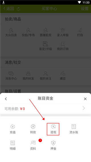 3、选择【提现】。