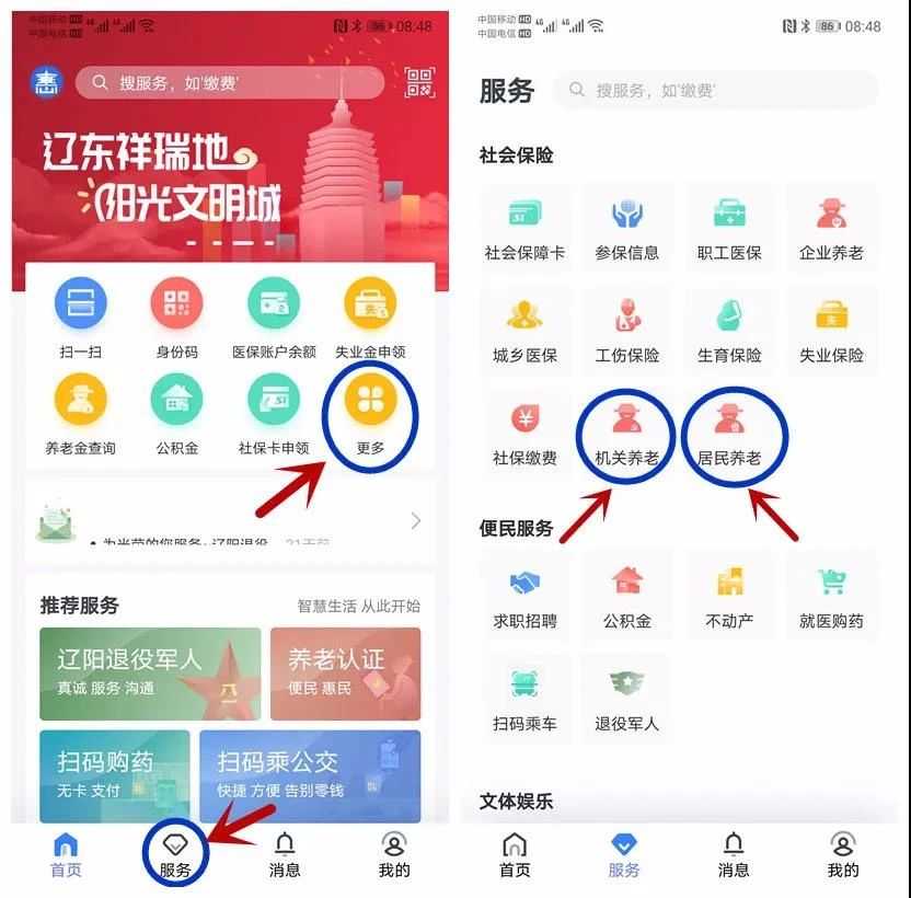 具体操作如下:点击“服务”或“更多”进入“服务”页点选“企业养老”