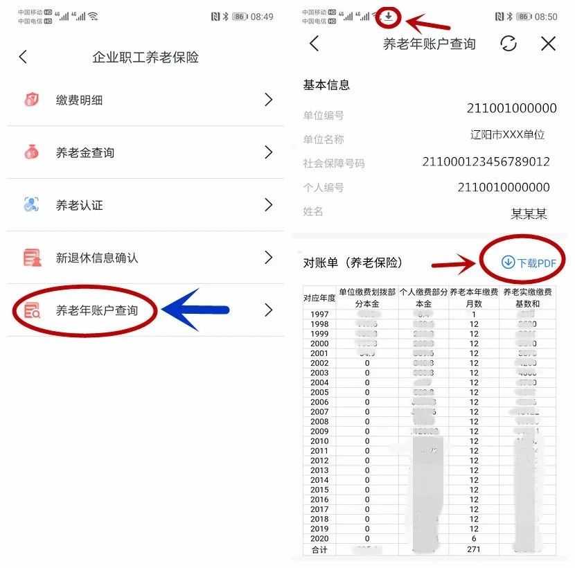 对于辽阳的城镇职工,可以通过APP查询《自然年度账户信息对账单(养老保险)》。