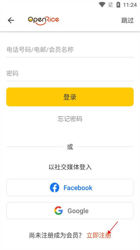 2、选择好之后就会来到登录界面,划到最下面选择立即注册功能。