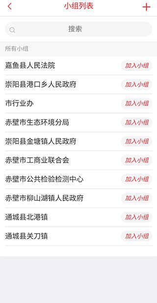 3、如果在小组列表中没有找到对应的小组,可以通过最上方的【搜索】功能快速定位。