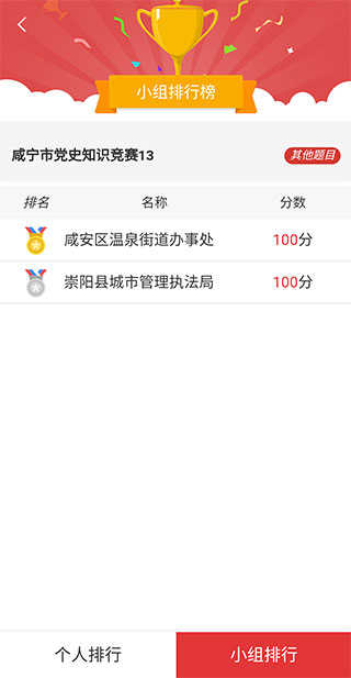 6、点击右下角的【小组排行】,还能以小组为单位进行查看。