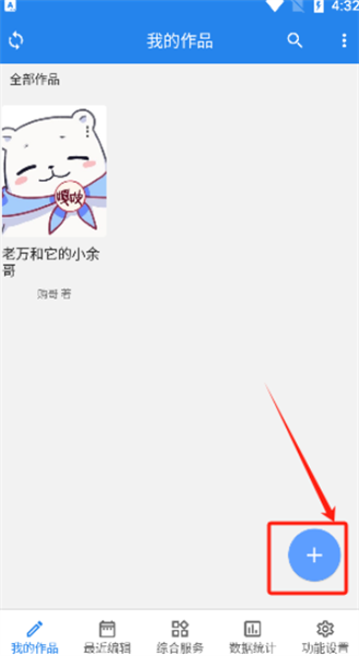 4、点击创建的书籍后点击页面的加号就可以开始创作了
