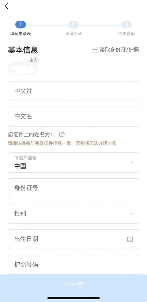 (1)填写人员基本信息,可本人申请也可代他人申请