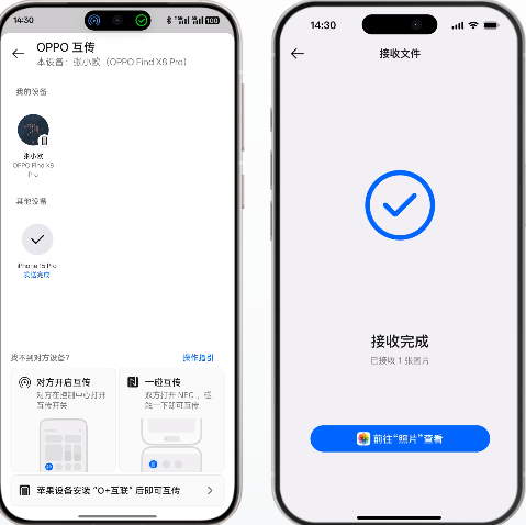 启动应用,对方能够轻松利用OPPO、一加与realme的互传功能,直接将文件发送至您的设备。