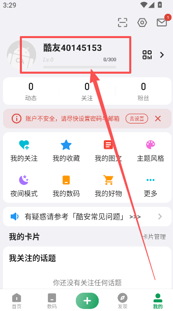 3、注册成功之后就会拥有自己的用户账号,在用户昵称下方就是对应的经验值,对应等级升级。