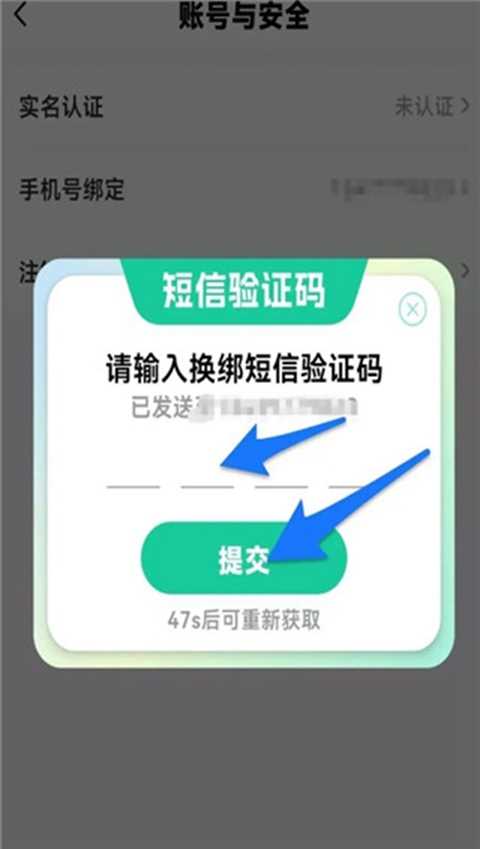 最后;在弹窗页面,输入新手机号、验证码、再点击【提交】即可完成更换手机号。