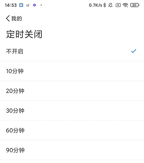 2、在打开的页面中,勾选定时播放(关闭)的时长,到达指定时间后将自动关闭播放。