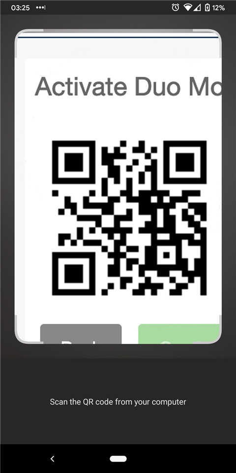 当您首次注册 Duo 并选择添加 Android 设备或使用 Duo Push 时,系统会显示一个 QR 码,您需要使用 Duo Mobile App 扫描该码以完成激活。