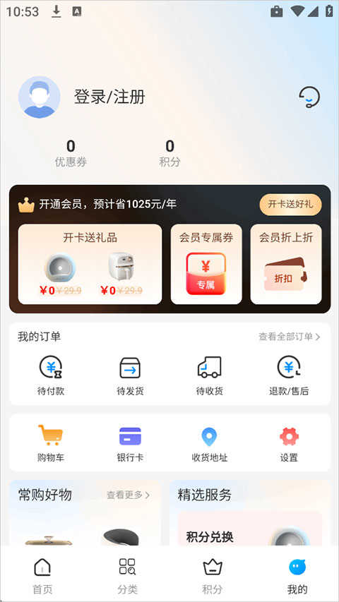 2、接着用户进入积分界面中领取会员积分礼品,新会员用户有会员礼赠送